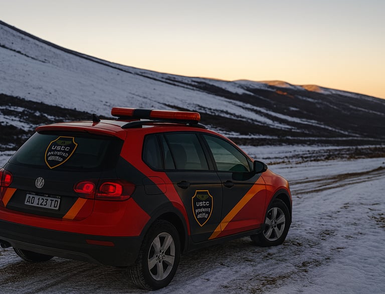 Servicio de acompañamiento de camiones, transporte de cargas, personal, con automóviles señalizados, habilitados y personal uniformado.